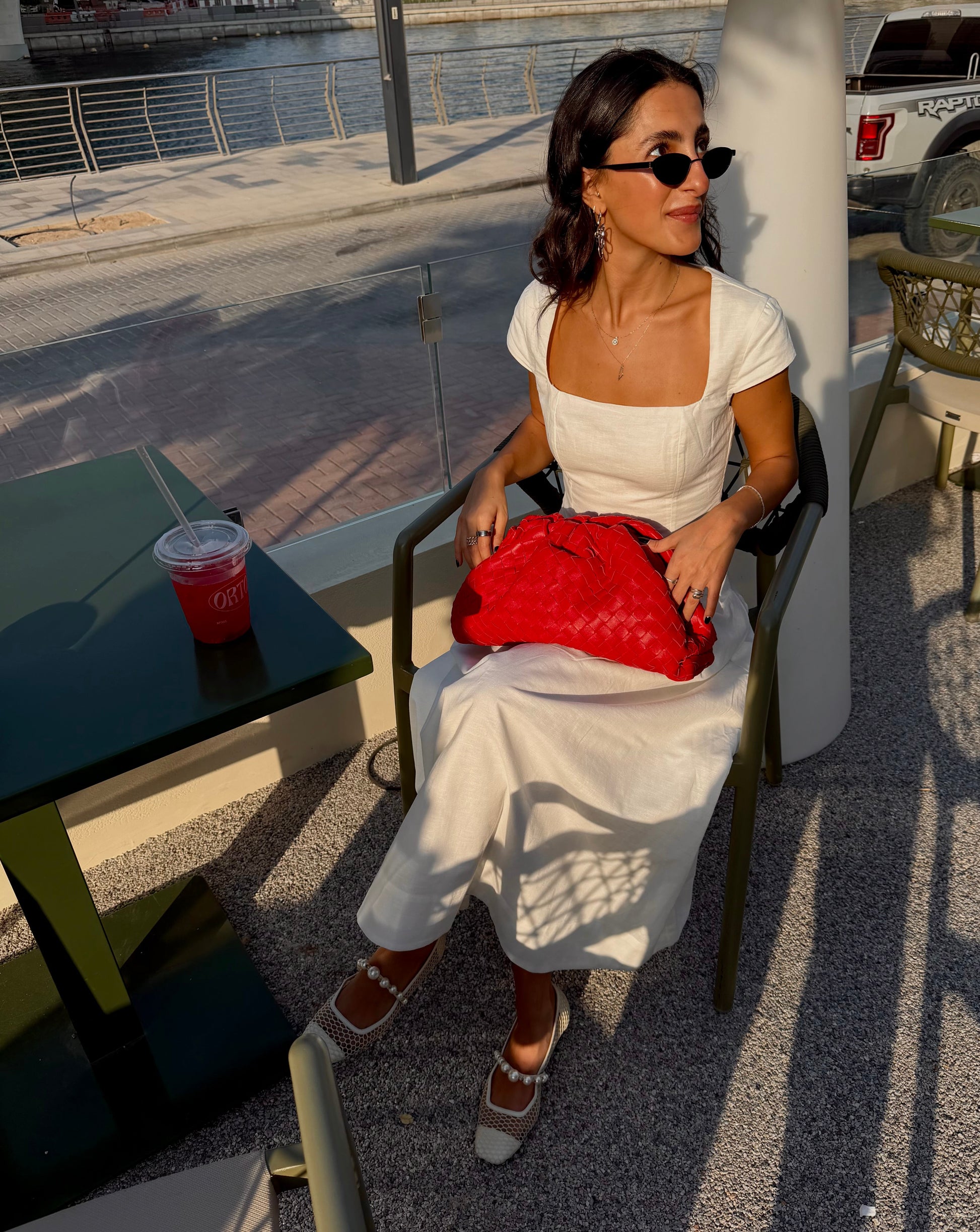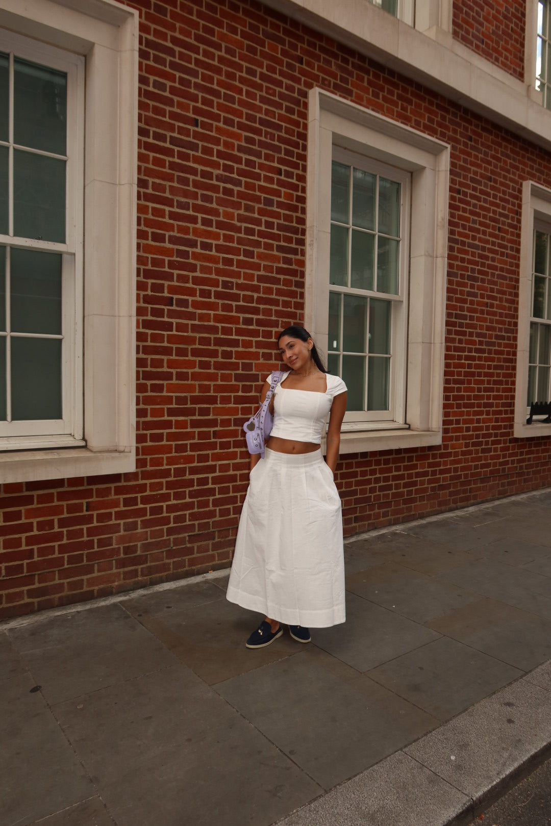 crafted from a 70% linen, 30% cotton blend, the vanilla top features a soft square neckline and subtle back cut-out for an elevated look